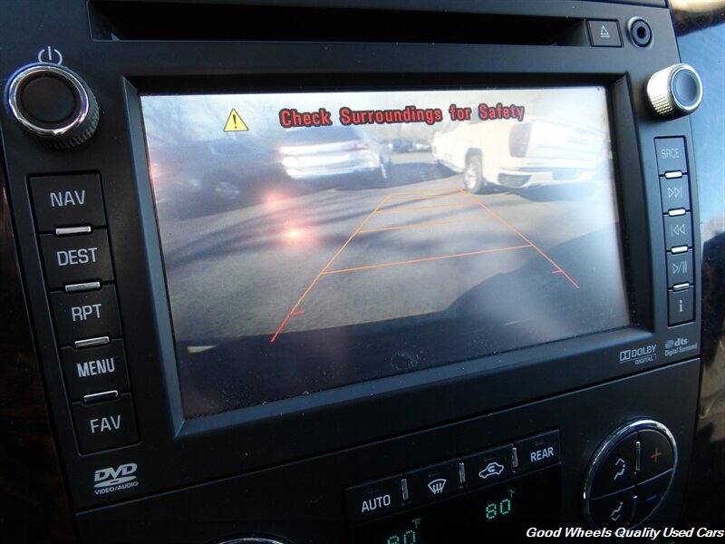 Our elegant 2012 GMC Yukon Denali AWD on display in Carbon Black Metallic has all the power and towing capacity you need and the luxuries you crave. Powered by a 6.2 Liter Vortec V8 that offers 403hp tethered to a 6 Speed Automatic transmission. This All Wheel Drive SUV offers nearly 18mpg on the highway and a smooth, quiet ride with automatic damping suspension. The contours are accentuated by 20-inch wheels, chrome accents, a power liftgate, and heated power-adjustable mirrors.