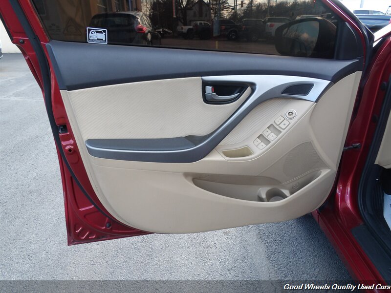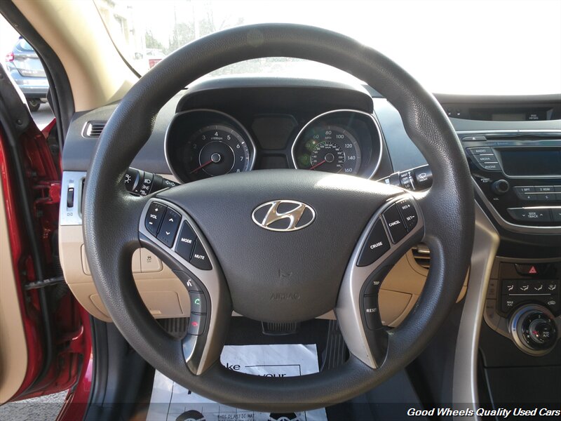 Sleek and sporty, our 2013 Hyundai Elantra GLS Sedan takes center stage in eye-catching Geranium Red! Powered by a 1.8 Liter 4 Cylinder that generates 148hp connected to a responsive 6 Speed Automatic transmission to serve up a confident ride. This Front Wheel Drive sedan will have you singing its praises while scoring nearly 38mpg on the highway! Our GLS is a handsome car with elegant lines and an overall wow factor.