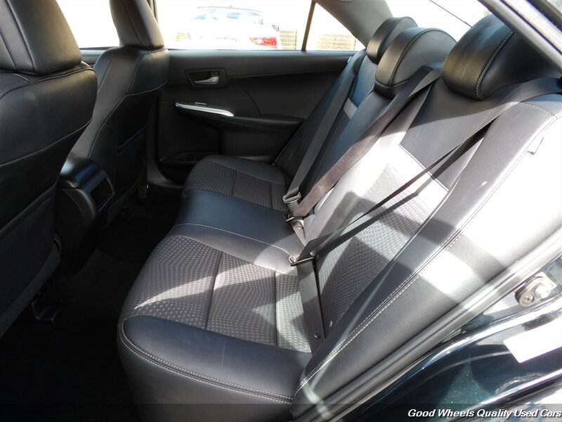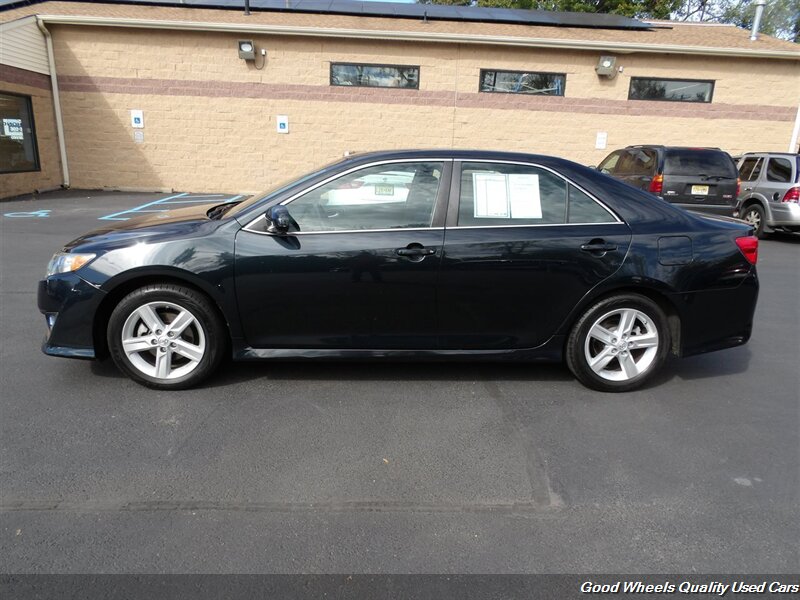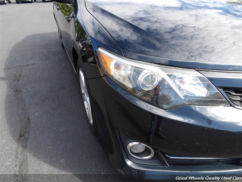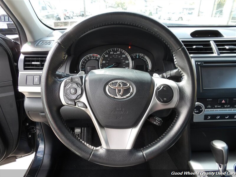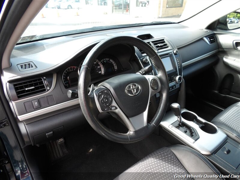 Stylish, our 2013 Toyota Camry SE Sedan shown in attractive Cosmic Gray Mica stands the test of time. Powered by a 2.5 Liter 4 Cylinder that produces 178hp paired with a 6 Speed Automatic transmission for easy passing maneuvers. This Front Wheel Drive sedan attains nearly 35mpg on the road. An aerodynamic wedge shape, distinctive taillights, and 17-inch alloy wheels accent the exterior of the Camry SE. With a sport-tuned suspension, you'll experience even better handling than before!The elegant SE interior features sports seats and a leather steering wheel. You'll appreciate Bluetooth? technology, available satellite radio, and a sound system with iPod integration. Conveniently, a central touchscreen interface for audio, phone, and car information will help you concentrate on the road ahead at all times. Our Camry's confident handling, straightforward technology, and comfortable passenger space make this a great addition to your family.You will always be safe and secure thanks to intelligent engineering from Toyota, ABS, stability assist, and an army of airbags. This Camry SE sedan is a smart choice! Save this Page and Call for Availability. We Know You Will Enjoy Your Test Drive Toward Ownership!