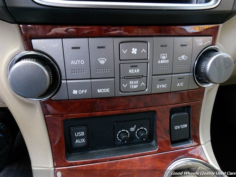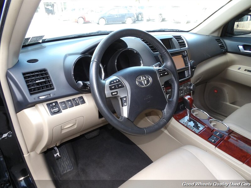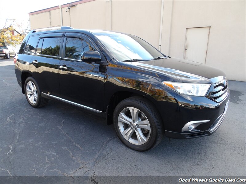 Our great looking 2013 Toyota Highlander Limited 4WD displayed in Black has what it takes! Powered by a 3.5 Liter V6 that offers 270hp coupled with a 5 Speed Automatic transmission. This Four Wheel Drive SUV attains nearly 22mpg on the highway and offers a smooth ride with excellent handling and space. Indeed, our Limited has the functionality of a big SUV but has been meticulously crafted to stand out in its class. Its profile is lower to the ground and is accented by great-looking wheels and chrome trim.