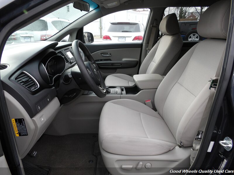 Arrive in style in our 2015 Kia Sedona LX presented in Platinum. Powered by a 3.3 Liter V6 delivering 276hp while connected to a 6 Speed Automatic transmission for easy passing. Our Front Wheel Drive offers a confident, quiet ride that is poised and comfortable and provides you with up to 24mpg on the road. The exterior of our LX comes with a Distinct grille, rear spoiler and projector beam headlights!