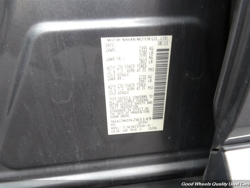 Our 2015 Nissan Murano Platinum AWD in Gun Metallic offers a blend of luxury and power that drivers like you rave about! Powered by a 3.5 Liter V6 provides 260hp paired with a CVT to deliver plenty of get-up-and-go. This All Wheel Drive team helps you achieve nearly 28mpg on the road. The sweeping profile of our Platinum is enhanced with gleaming alloy wheels, roof rails, a sunroof, and the v-motion grille that lets you stand out from the crowd.
