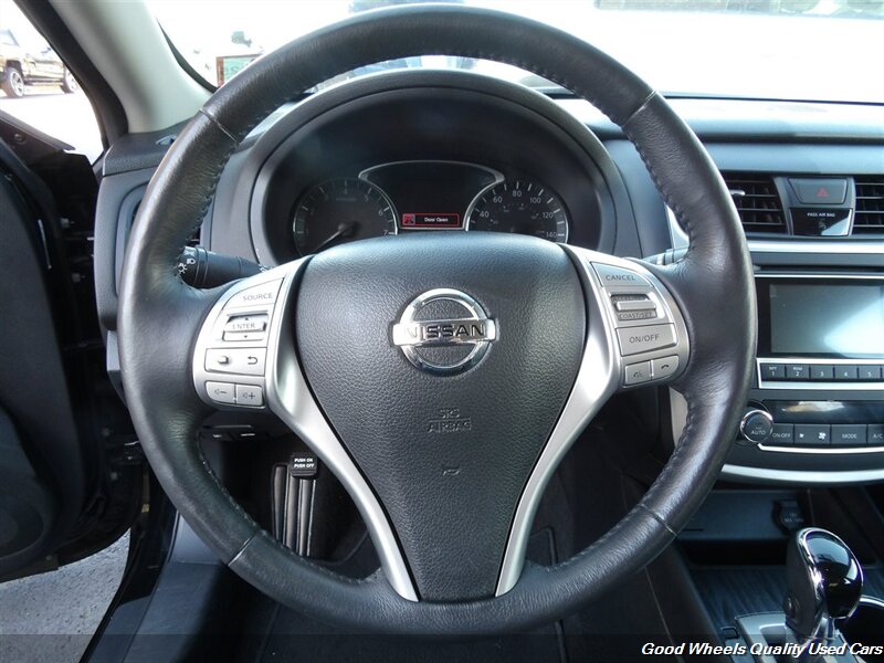 You'll love the way you feel in our luxurious 2016 Nissan Altima 2.5 SL Sedan presented in Super Black! Powered by a 2.5 Liter 4 Cylinder that offers 182hp paired with an innovative CVT for easy passing maneuvers. This Front Wheel Drive combination scores nearly 40mpg on the highway, complemented by alloy wheels and unique halogen headlamps with a projector-type lens.Inside our SL, enjoy remote engine start, push-button start, leather seating, Bluetooth?, an Advanced Drive-Assist Display, NissanConnect with mobile apps, and Bose premium audio with a color display that makes every ride feel first class. The interior is spacious and thoughtfully designed to meet your demands.A great safety pick, our Nissan provides innovative safety features such as Active Understeer Control, blind-spot warning, rear cross-traffic alert, automatic headlights, stability/traction control, and advanced airbags. Get behind the wheel, and you'll see that this beautiful Altima 2.5 SL sedan drives like a dream and is a perfect blend of performance, efficiency, style, and safety! Save this Page and Call for Availability. We Know You Will Enjoy Your Test Drive Towards Ownership!