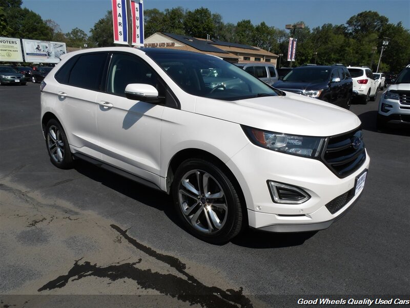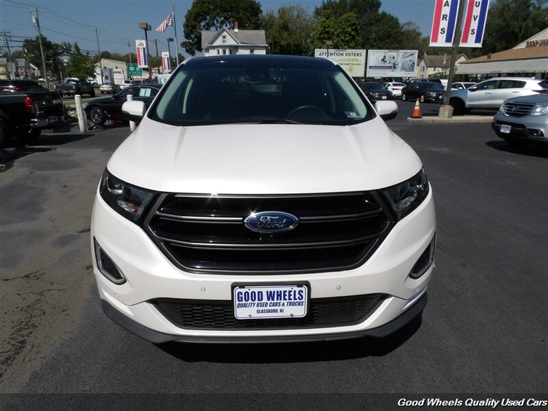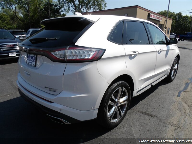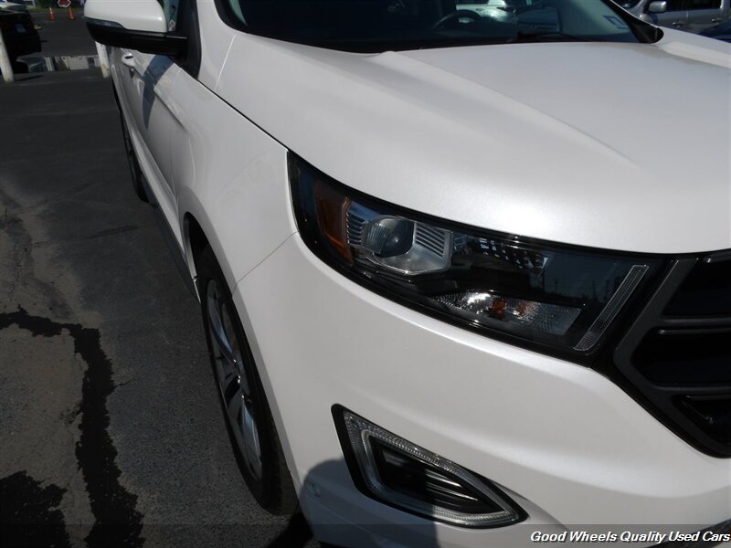 Gorgeous in White Platinum, our 2017 Ford Edge Sport AWD will make you fall in love with driving all over again! Powered by a TurboCharged 2.7 Liter EcoBoost V6 offers 315hp connected to a paddle-shifted 6 Speed Automatic transmission for spirited driving. This All Wheel Drive SUV feels robust and sporty with adaptive steering, torque vectoring control, and a sport-tuned suspension, all while offering nearly 24mpg on the highway showing off the optimal blend of efficiency, utility, and fun behind the wheel. Dare to turn heads in our Edge Sport that boasts bold style with its unique alloy wheels, dual exhaust tips, and distinct grille.