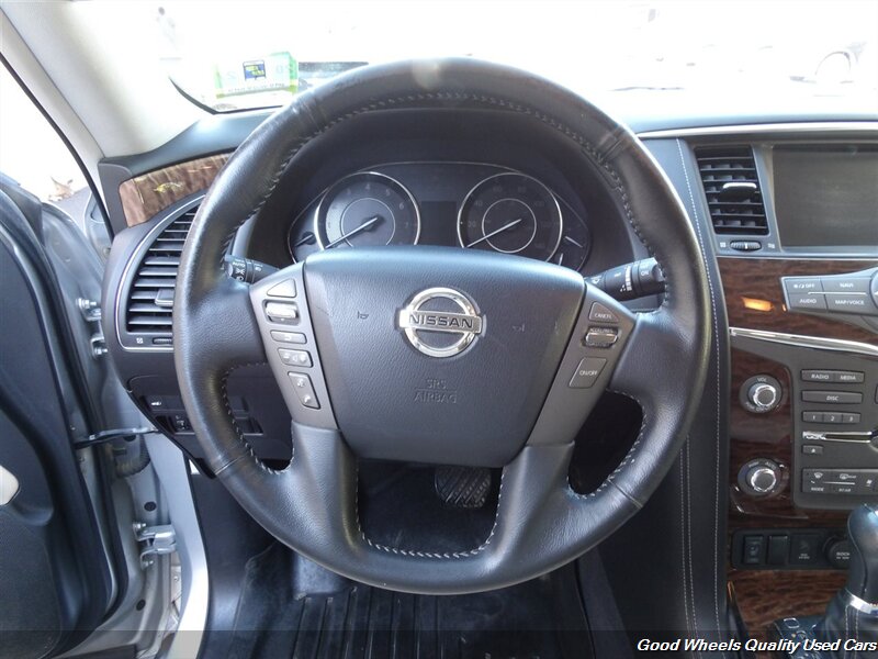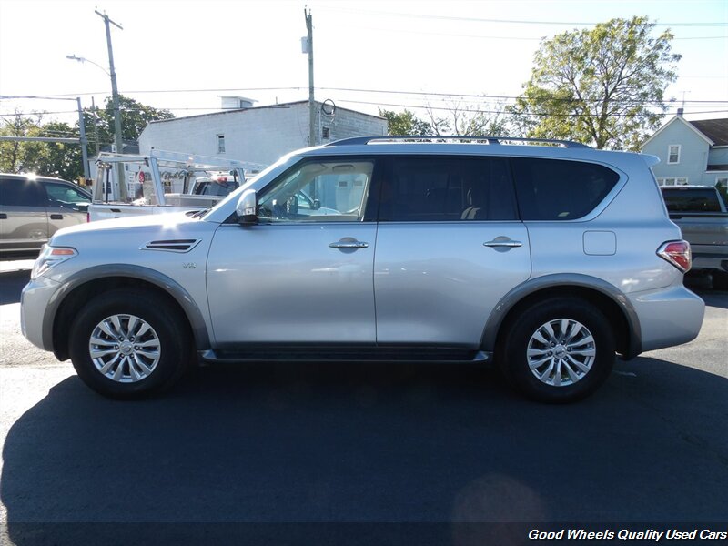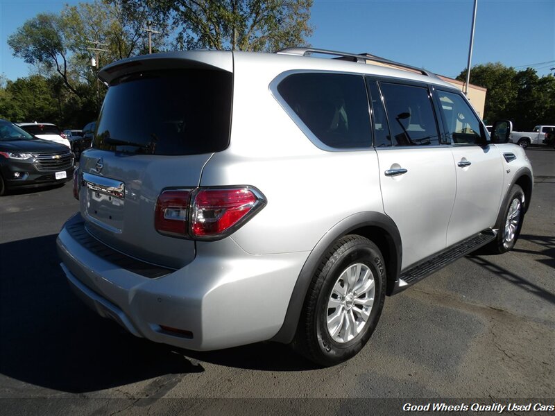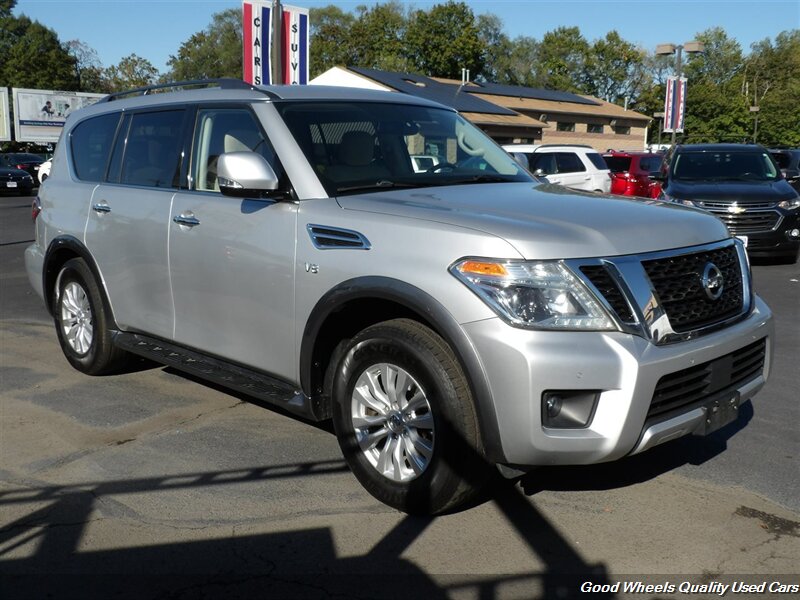 Our Brilliant Silver 2018 Nissan Armada SV 4WD is just the right size for families that like to live large! Motivated by a 5.6 Liter V8 delivering 390hp matched to a responsive 7 Speed Automatic transmission with Tow/Haul mode that lets you easily handle heavy loads. Enjoy the smooth, confident ride of our Four Wheel Drive SUV that returns nearly 18mpg on the highway while making a powerful impression wherever it goes, thanks to its chrome grille, LED lighting, and alloy wheels. Our Armada also shows its practical side with power-folding mirrors and a hitch receiver.Plenty of room comes standard inside our SV, equipped with cloth-heated power front seats, versatile second and third rows, a leather-wrapped steering wheel, and a dual-zone automatic climate system with separate controls for passengers in the back. Technology is also close at hand with an 8-inch touchscreen, full-color navigation, Bluetooth?, and a 13-speaker Bose audio system with HD Radio and available satellite radio complete with special stations for family-friendly listening.Count on smart Nissan features for safer journeys, including a rearview camera, dynamic vehicle control with traction control, active brake limited slip technology, ABS, and an advanced airbag system. Our Armada SV is an ideal blend of comfort, capability, and bold style that will impress you. Save this Page and Call for Availability. We Know You Will Enjoy Your Test Drive Towards Ownership!