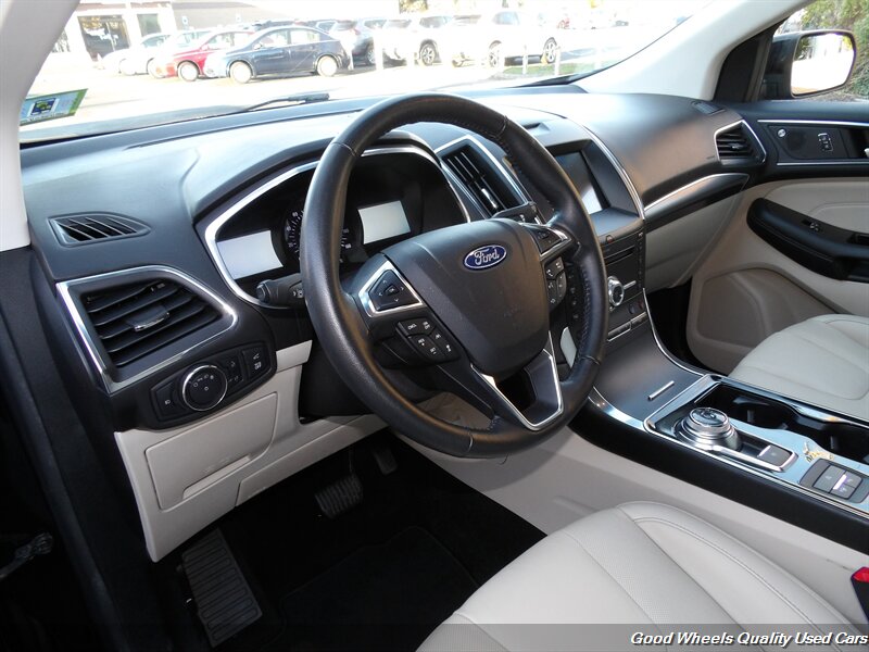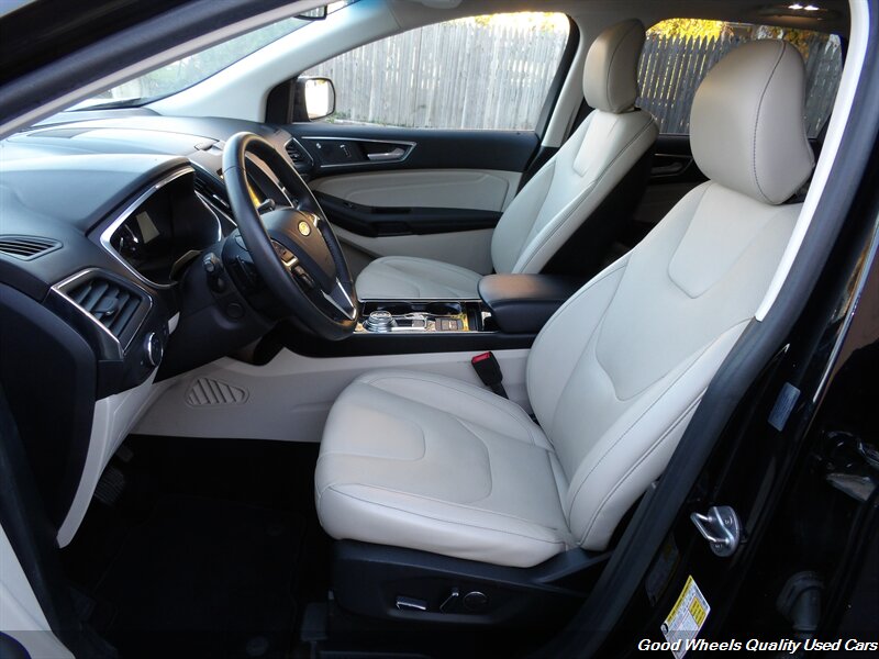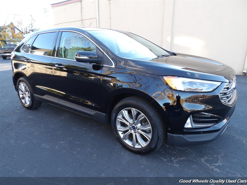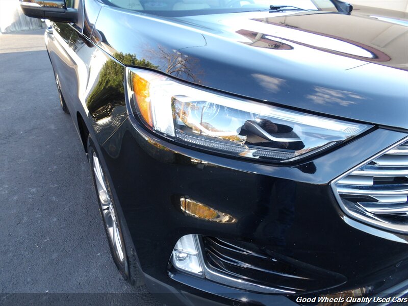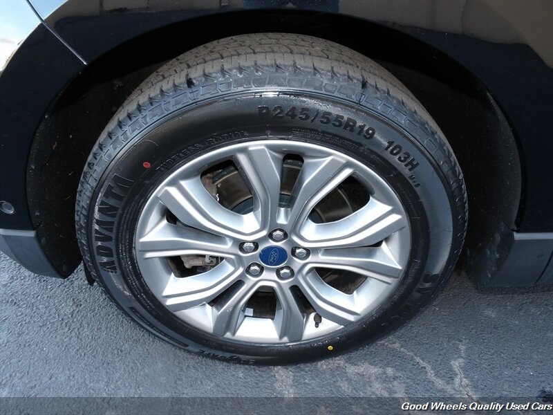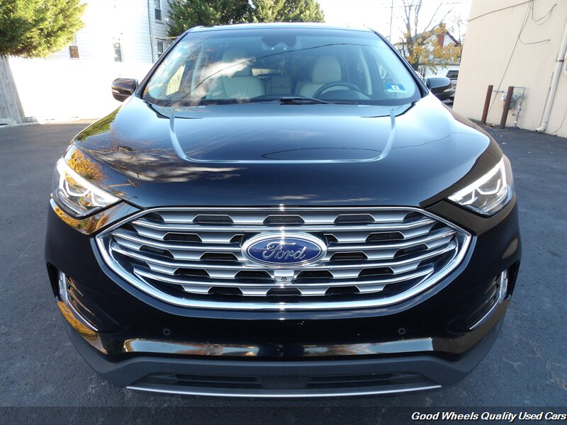Sporting bold sophistication and innovative design, our 2019 Ford Edge Titanium AWD in Agate Black is an ideal choice! Powered by a TurboCharged 2.0 Liter EcoBoost 4 Cylinder that offers 245hp connected to an 8 Speed Automatic transmission for that performance you demand. Our All Wheel Drive SUV has ample power, easy maneuverability, and precise handling while earning nearly 29mpg on the highway. A certain European flair to the elegant exterior of our Edge Titanium lets you stand out from the crowd. Take note of the hands-free liftgate, bright grille, alloy wheels, sunroof, and LED signature lighting.