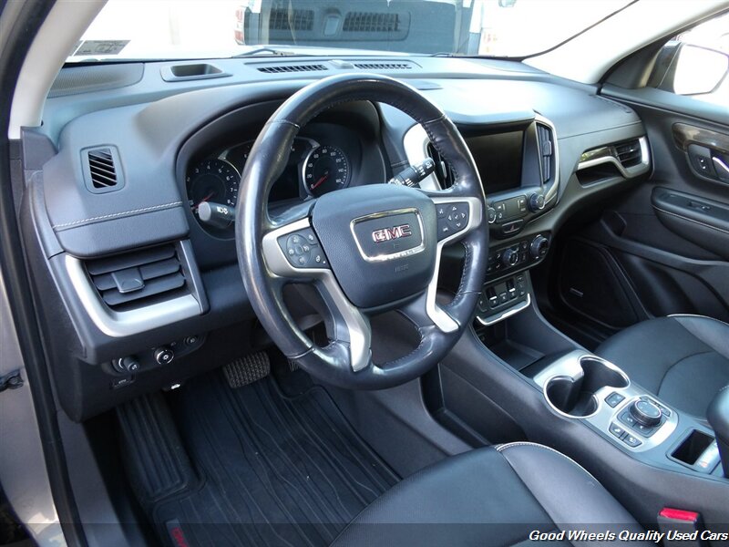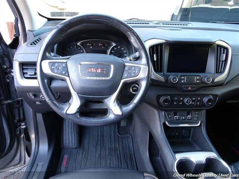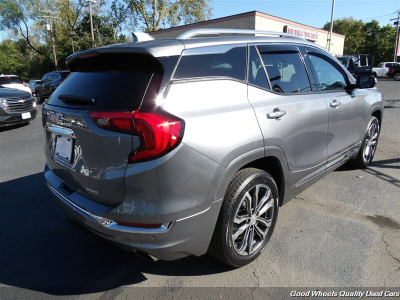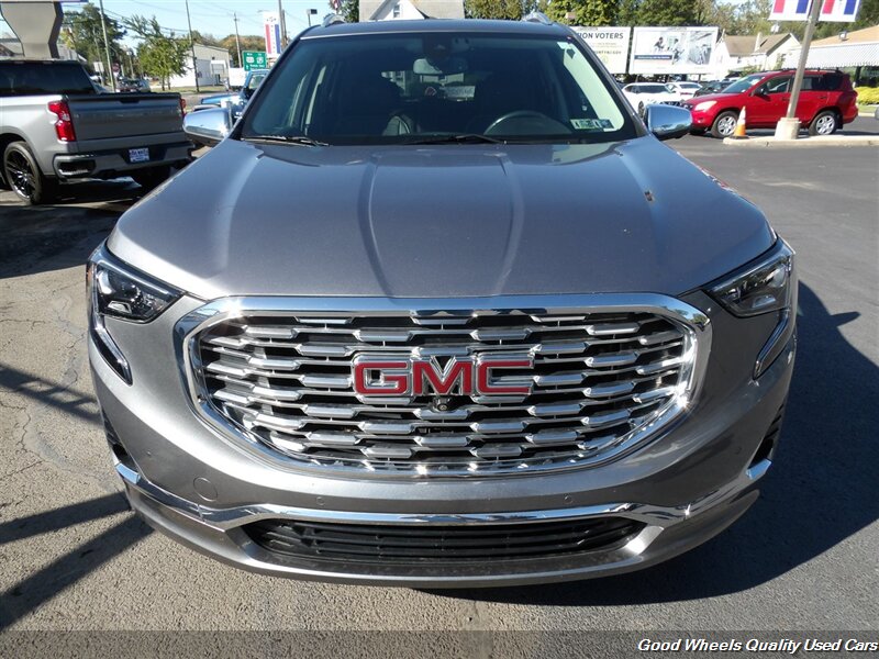 Step up to our 2019 GMC Terrain Denali AWD presented in Satin Steel Metallic! Powered by a TurboCharged 2.0 Liter 4 Cylinder supplying 252hp paired with an advanced 9 Speed Automatic transmission. This All Wheel Drive SUV is a tranquil ride that provides excellent handling and rewards you with nearly 26mpg on the highway! Bold and refined, our Terrain commands the road with its striking Denali grille, signature LED lighting, and prominent alloy wheels, with a hands-free tailgate for added convenience.Step inside this Denali cabin, and you will be amazed by the beautiful interior that's highlighted by leather heated front seats, a multi-flex sliding second row, a leather heated steering wheel, dual-zone automatic climate control, remote start, and sophisticated technology that makes your life easier. Just check out the GMC Infotainment System with an 8-inch touchscreen, full-color navigation, Android Auto?, Apple CarPlay?, Bluetooth?, WiFi compatibility, and Bose sound system!GMC also offers a sense of security with its masterful engineering supported by technologies such as a backup camera, side blind-zone alert, lane-keeping assistance, ABS, automatic braking, parking sensors, and more. Radiating premium good looks inside and out, this Terrain Denali delivers without compromise! Save this Page and Call for Availability. We Know You Will Enjoy Your Test Drive Towards Ownership!