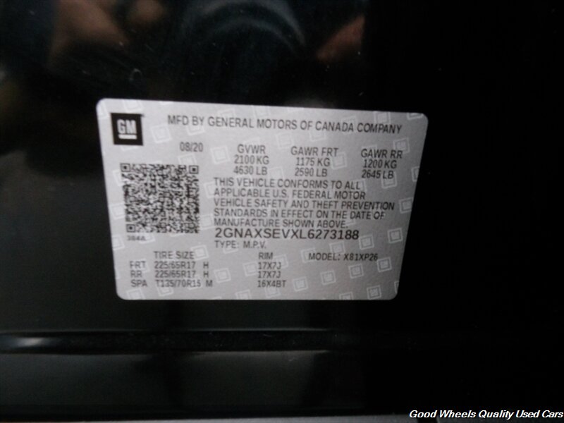 Our carefully sculpted 2020 Chevrolet Equinox LS AWD captures attention in Mosaic Black Metallic! Powered by a TurboCharged 1.5 Liter 4 Cylinder that offers 170hp connected to a 6 Speed Automatic transmission built for busy days. This capable All Wheel Drive SUV also has responsive handling and sees nearly 30mpg on the highway. Our Equinox brings sporty sophistication into view with its sweeping silhouette, LED lighting, automatic halogen headlamps, black-capped heated power mirrors, solar-absorbing glass, and great-looking alloy wheels.