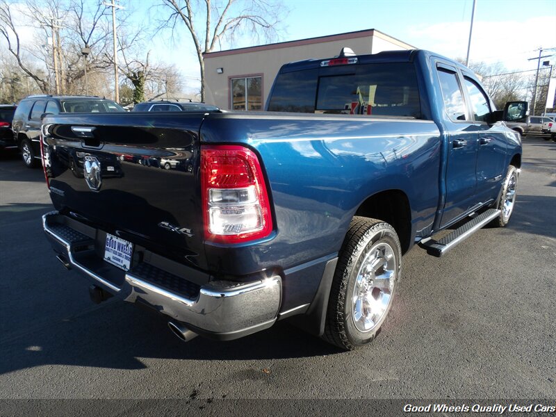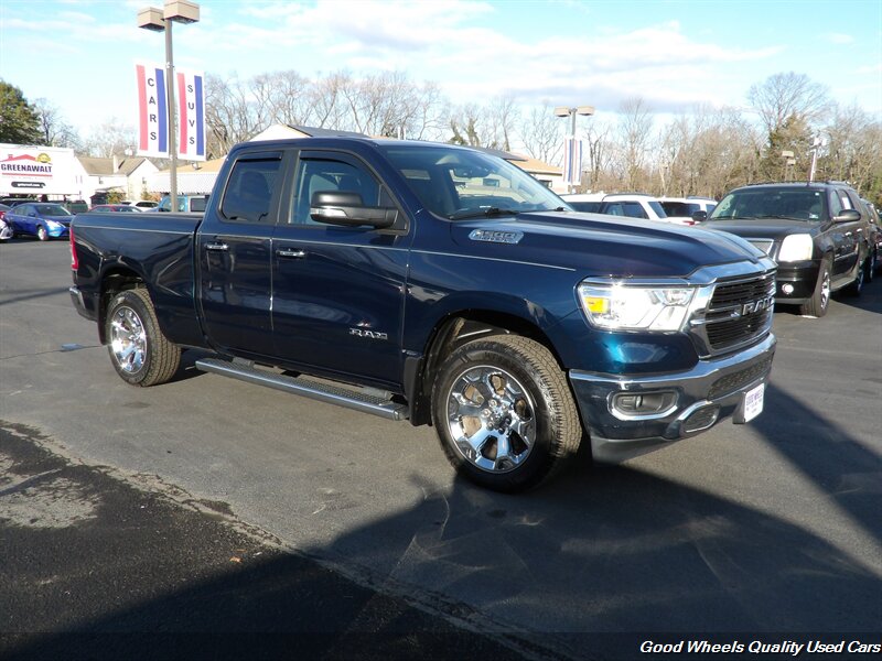 Our 2020 RAM 1500 Big Horn Quad Cab 4X4 in Patriot Blue Pearl is a rugged workhorse that's ready to ride to almost any adventure! Motivated by a 5.7 Liter HEMI V8 offering 395hp paired with an 8 Speed Automatic transmission for optimal performance and towing capability. This Four Wheel Drive truck also has a composed ride and takes you further down the road with confidence as you score nearly 22mpg on the highway. Check out our Big Horn and notice the fog lamps, power heated mirrors, distinctive grille, chrome accents, 18-inch alloy wheels, and locking tailgate. You'll make a big impression with features like those!