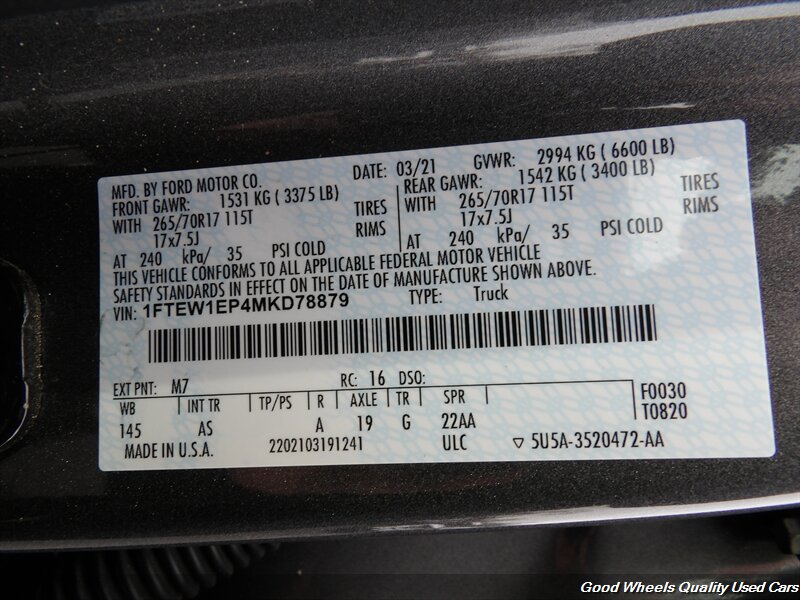 Relentlessly tough, our 2021 Ford F-150 XL SuperCrew 4X4 in Carbonized Gray does more so you can worry less! Motivated by a TurboCharged 2.7 Liter EcoBoost V6 providing 325hp tethered to a 10 Speed SelectShift Automatic transmission for the kind of capability that makes this a best-selling workhorse. This Four Wheel Drive truck paves the way for better days with composed handling, and it returns nearly 24mpg on the highway. Make your move, and our F-150 gets you there with style thanks to a bold black grille, matching bumpers and mirror caps, and eye-catching wheels.