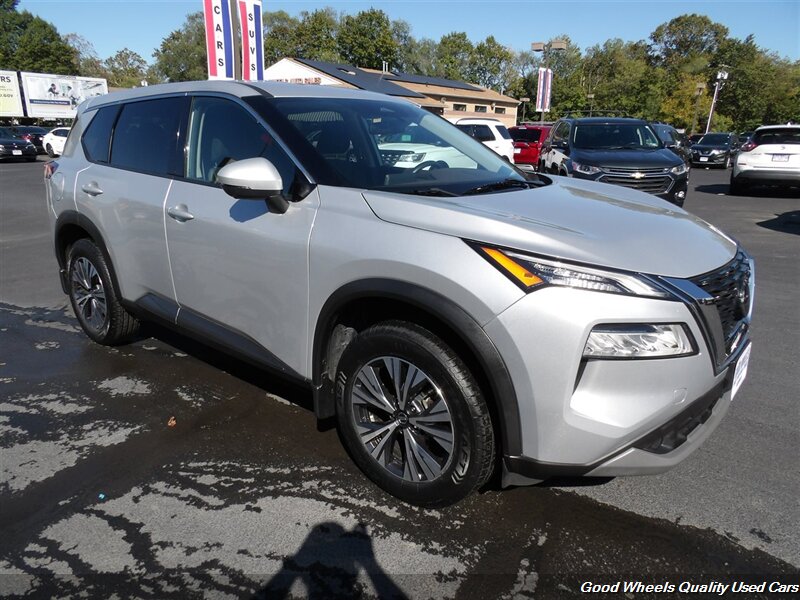 Our adventurous 2021 Nissan Rogue SV AWD is built to turn heads in a stunning Brilliant Silver Metallic finish. Powered by a 2.5 Liter 4 Cylinder supplying 181hp matched to an Xtronic CVT with Sport and Eco modes. Nimble and responsive on either setting, this All Wheel Drive SUV also returns nearly 32mpg on the highway and revs up your travel with an expressive look. You'll love the fierce V-motion grille that's complemented by LED lighting, alloy wheels, a floating-style roof, a rear spoiler, and heated power mirrors with built-in turn signals.Settle inside our SV cabin that's a great place to enjoy family time on the go, thanks to supportive cloth seats with eight-way power for the driver plus dual-zone automatic climate control, remote/pushbutton start, and NissanConnect infotainment technology to keep up with your busy days. With that, you're treated to an Advanced Drive-Assist Display, an 8-inch touchscreen, WiFi compatibility, Android Auto?, Apple CarPlay?, Bluetooth?, and a six-speaker sound system. Smart cargo solutions give our Rogue the versatility your family needs, too.Nissan safeguards your travels with top-notch safety technology such as an around-view camera system, automatic braking, a blind-spot monitor, lane-departure warning, a rear-seat reminder, and ProPILOT Assist for hands-on semi-autonomous driving. Go Rogue SV, and you'll never want to go back! Save this Page and Call for Availability. We Know You Will Enjoy Your Test Drive Towards Ownership!